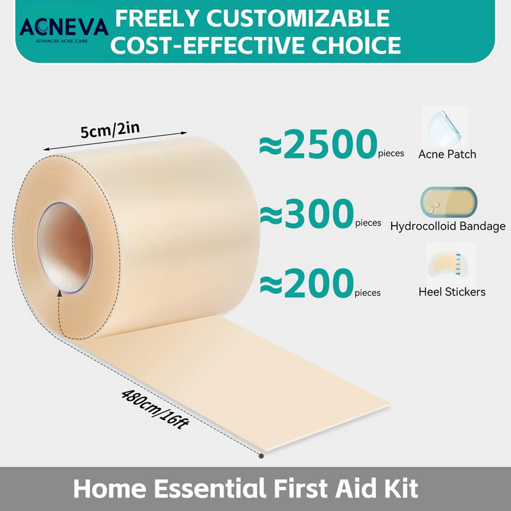 One roll makes up to 2500 acne patches, and 300 Hydrocolloid bandages.